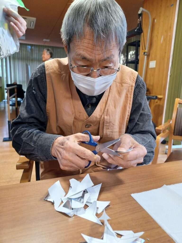 ハサミを使って何やら切っています