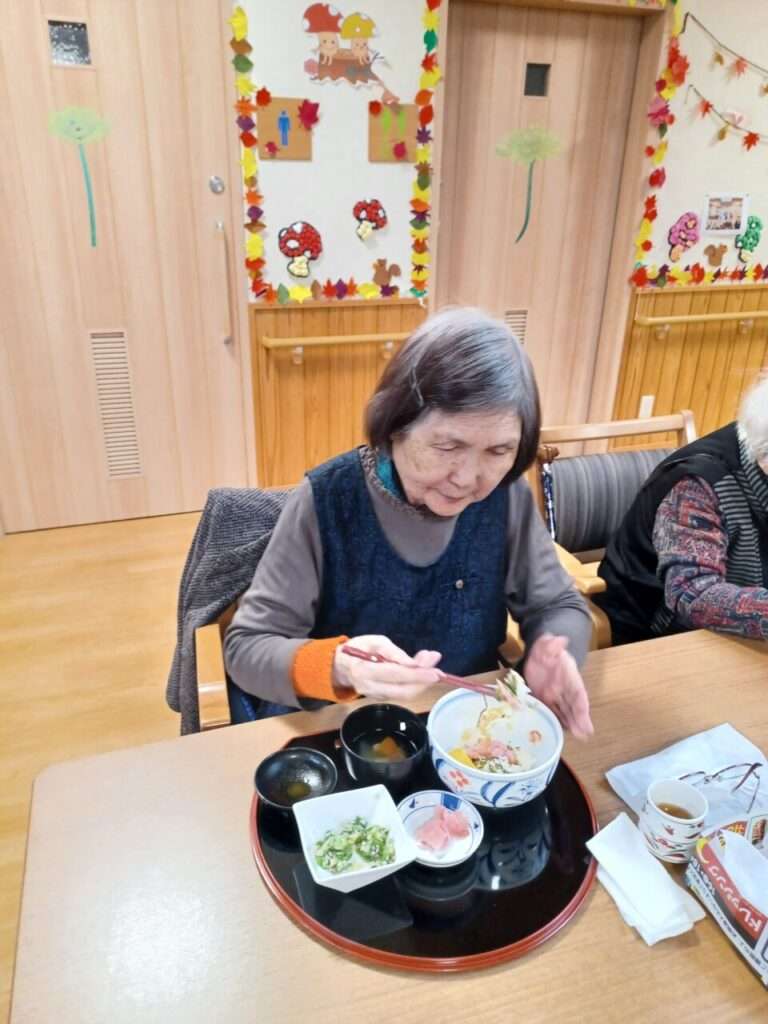 デイサービスセンター喜楽里ネギトロ丼☆2025.11.20こんにちは~‼今日のお昼は…「ネギトロ丼」でした(^^♪大好評で皆さん完食されていました☺おやつは「イチゴスペシャル」でした。ちょっと散歩に出かけてみました(^^)/寒かったですが、紅葉がキレイでした‼また明日~☺ な~んだ☆前の記事