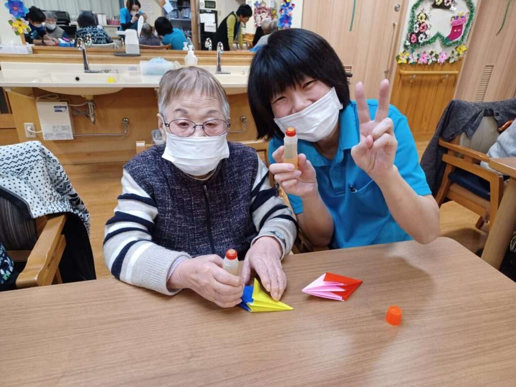 デイサービスセンター喜楽里☆折り紙教室☆2025.12.16こんにちは☺今日は折り紙のボランティアの方が来られて「折り紙教室」を行いました(^^♪皆で「吹きこま」を作りました‼完成したこまを吹いてみました(^^♪皆さんよく回っていました‼また明日~☺ 午前活動前の記事