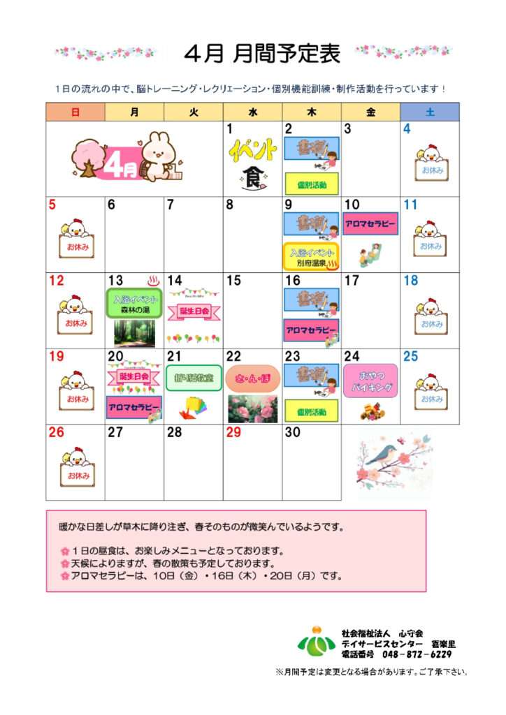 4月の月間予定です‼
